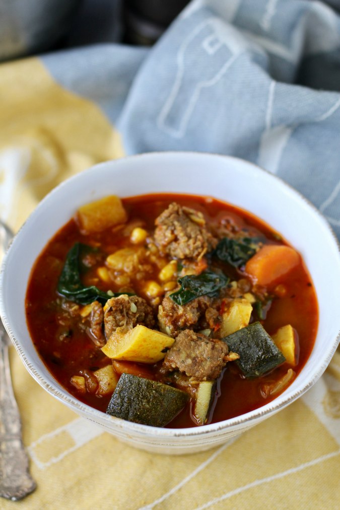 This summer vegetable soup with sausage and lentils is so rich and flavorful, and it's a great way to use some of the bounty from your garden.